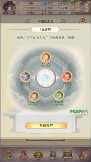 聚灵池可以将低级先天之物培育成高级先天之物,这个功能其实还是很实用的,后期升级神通都会用到。