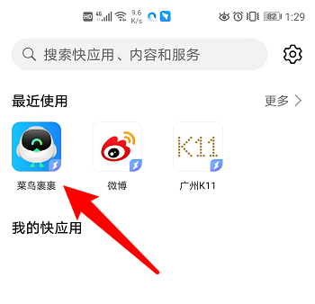 2、主页面点击快应用
