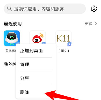 4、然后长按要删除的快应用