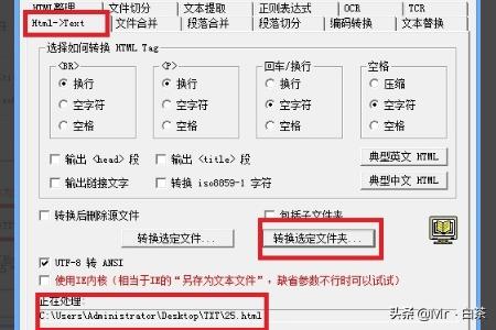 第五步:将“html”文件转换成“TXT”文件按图选择TextForever软件的html->TXT功能,将保存有html格式电子书的文件夹转换成txt格式,备用。