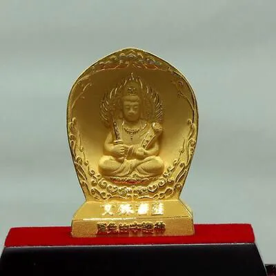 文殊菩萨是佛陀怙恃之一。文殊菩萨又称法王子,为智慧之象征,身紫金色,形如童子,五髻冠其项,右手持金刚宝剑(表示智能之利),能斩群魔,断一切烦恼,左手持青莲花,花上有金刚般若经卷宝,象征所具无上智慧,坐骑为一狮子(表示智能威猛)。