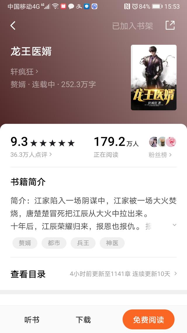 江辰唐楚楚小说还没有完结,作者还在更新,4月26日已更新到1049章震撼。