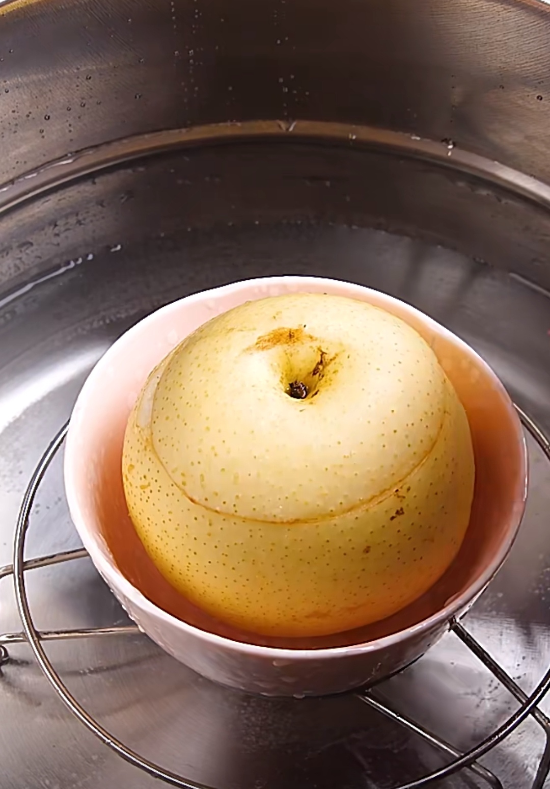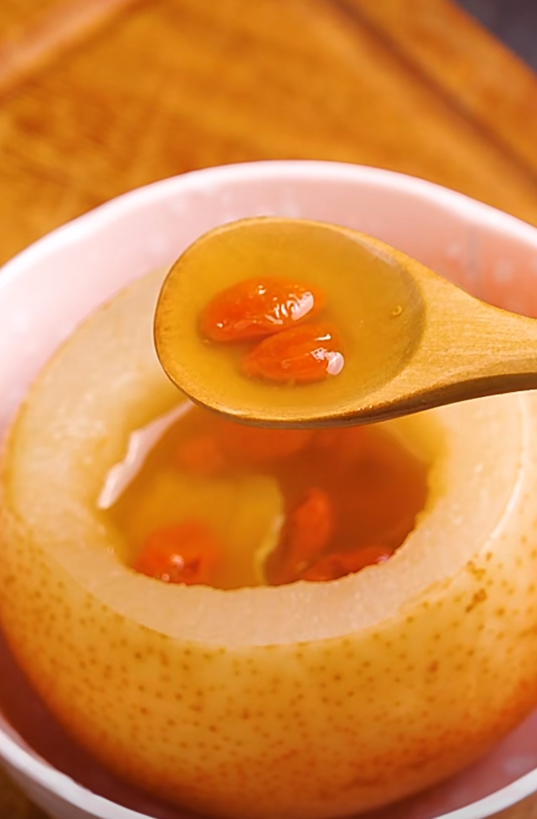 蒸好的梨汤要趁热喝,凉了齁甜会腻。